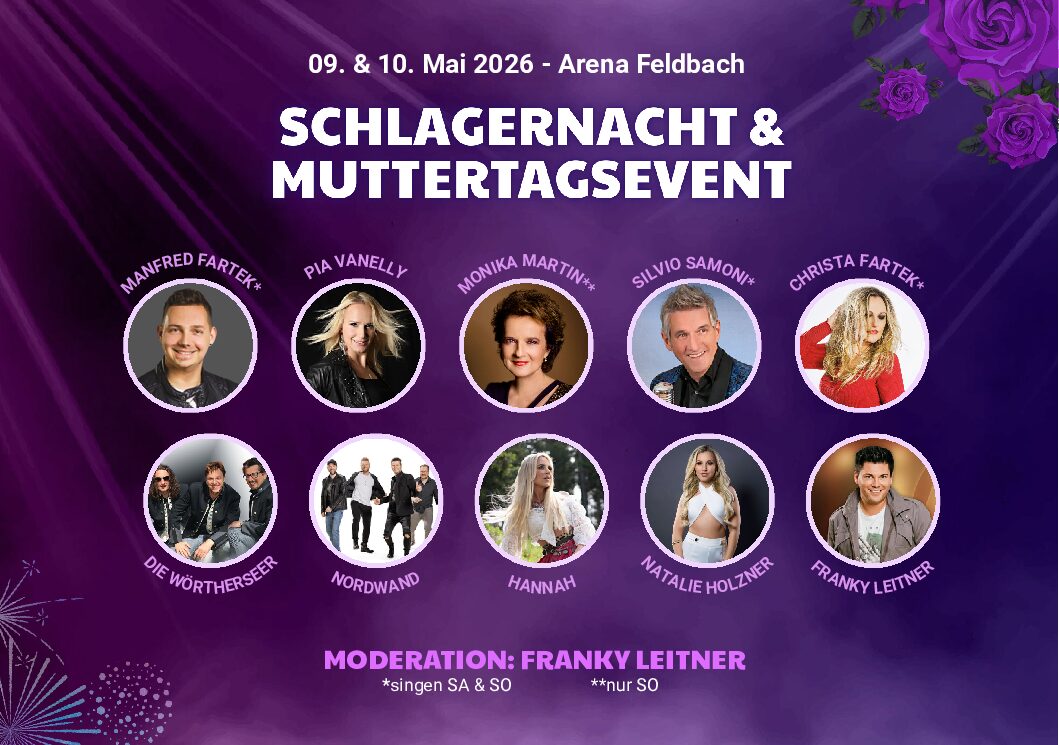 SA09MAI15:3023:59Schlagernacht & Muttertagsevent in der Feldbach Arena - 8330 Feldbach15:30 - 23:59