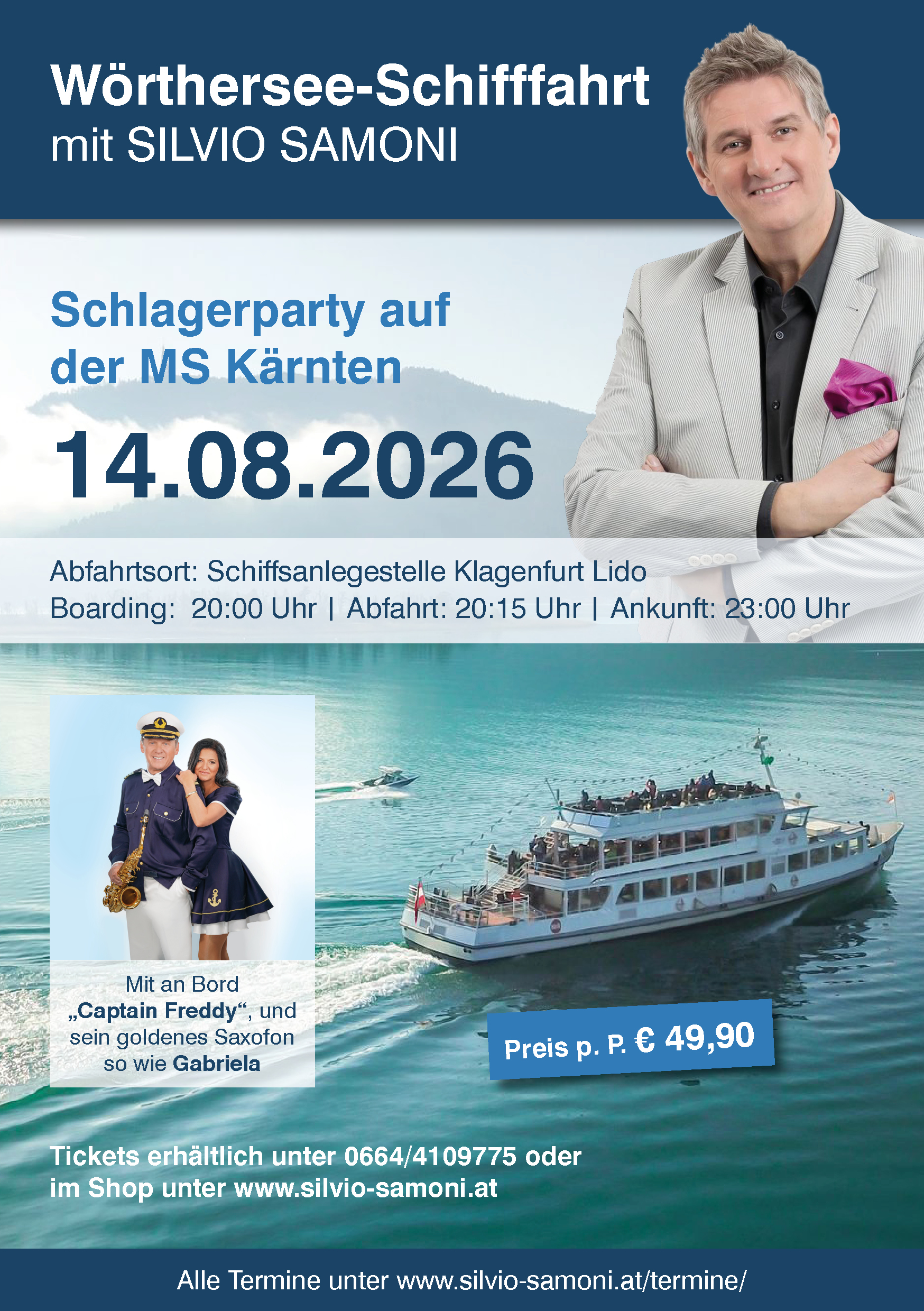 Eintrittskarte Wörthersee-Schifffahrt mit Silvio Samoni 14.08.2026
